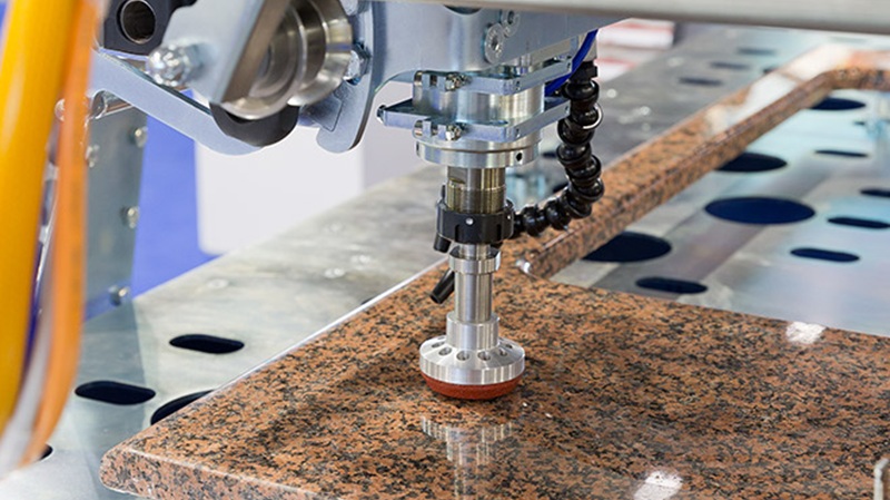 All-in-one machine for countertops: sink cut-outs, shaping and polishing internal and external contours, drilling and performing recess drains.